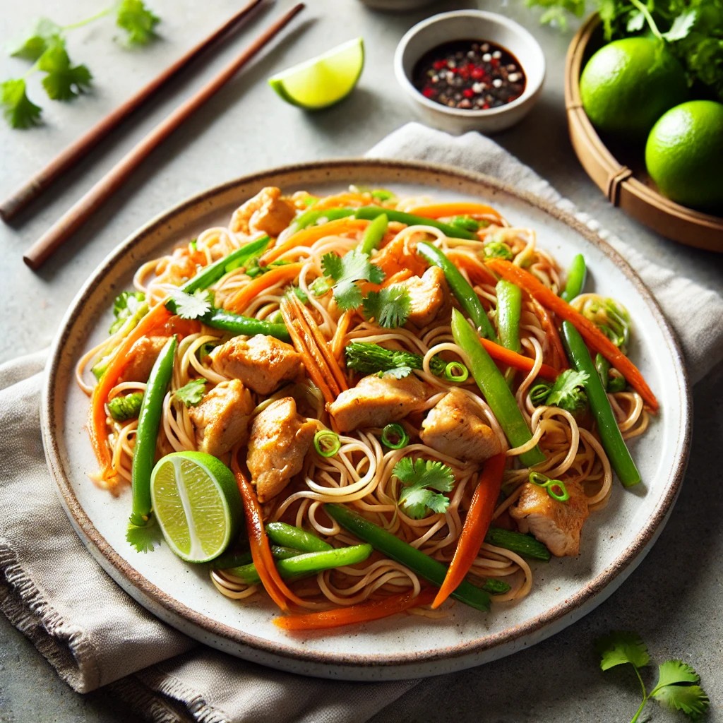 Onze mihoen met kip is een smaakvolle combinatie van zachte rijstnoedels, malse kip en knapperige groenten in een heerlijke saus.