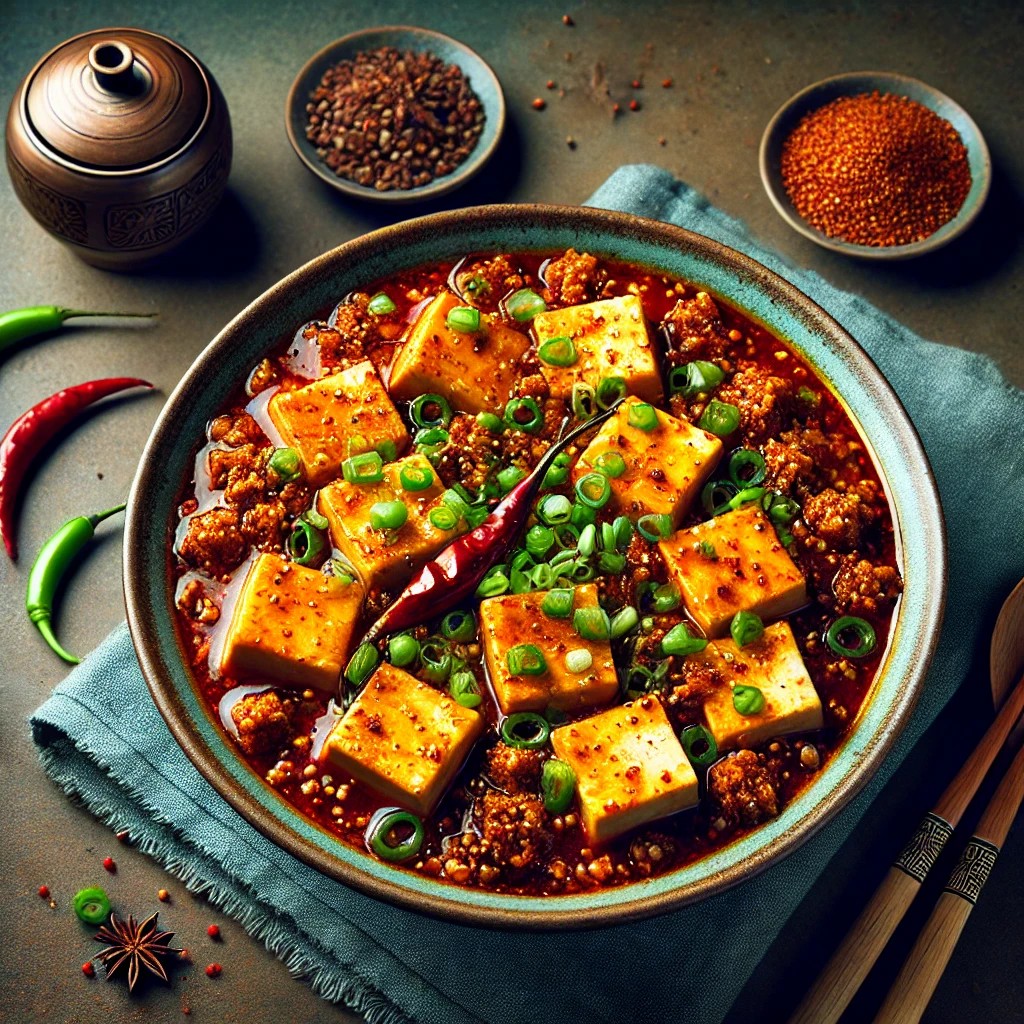 Onze Tofu Ma Po is een pittige Sichuan-specialiteit met zachte tofublokjes in een aromatische, kruidige saus.